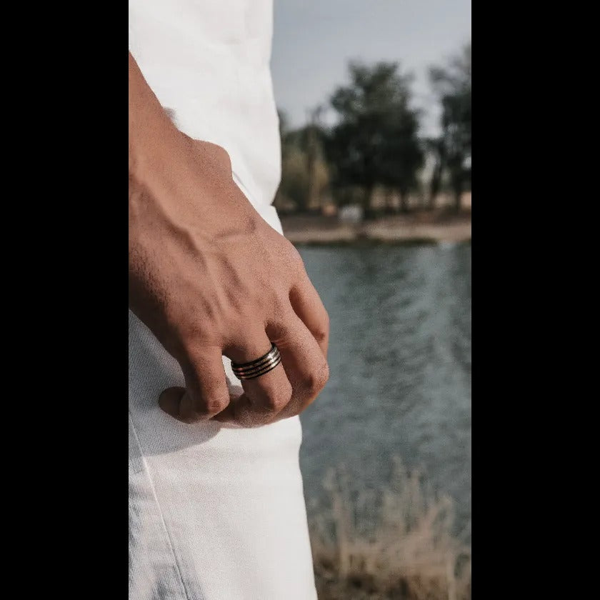 AOK-London Introducing black and gold tungsten ring, a perfect blend of style and durability. The black and gold color combination creates a sleek and modern look, making it perfect for any occasion. Tungsten construction makes it incredibly durable and scratch-resistant. A stylish ring that will last for years to come
